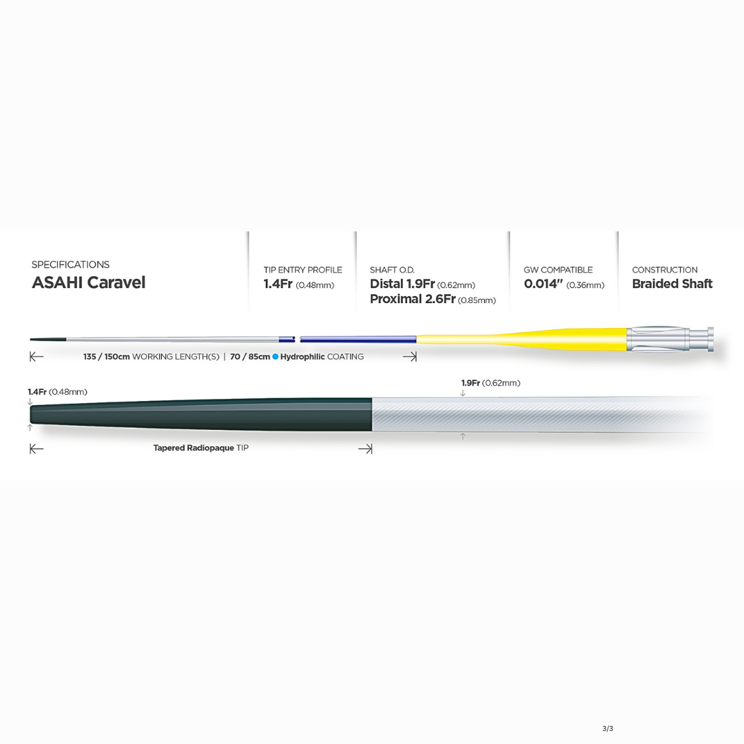 Caravel is a low profile microcatheter specifically designed for high performance in tortuous anatomy and microchannels.