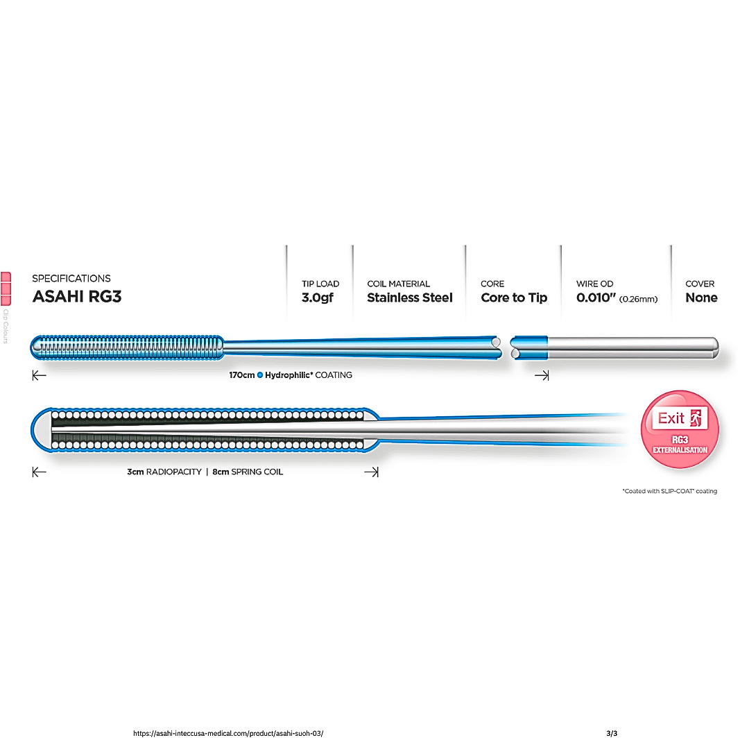 | ASAHI RG3 | AHW10S302S | Straight | 330cm | 0.26mm (0.010″) | 3gf | 8cm | 3cm | Hydrophilic | 170cm |