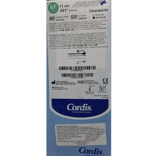 Cordis 504626Z 6Frx23cm Cordis AVANTI+ Transradial Kit includes: AVANTI+ Sheath Introducer 6Frx23cm, w vessel dilator 31.5cm, mini-guidewire.021″x70cm, &  21G needle 504-626Z Bx of 5