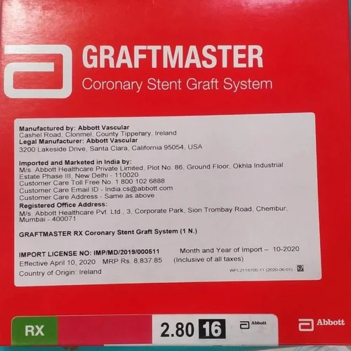 The GRAFTMASTER™ RX Coronary Stent Graft System is indicated for use in the treatment of free perforations, defined as free contrast extravasation into the pericardium, in native coronary vessels or saphenous vein bypass grafts ≥ 2.75 mm in diameter. The effectiveness of this device for this use has not been demonstrated. Long-term outcome for this permanent implant is unknown at present.